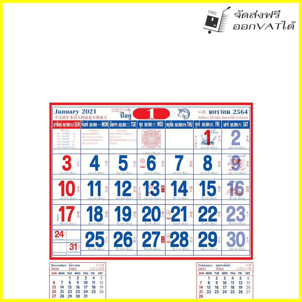 ปฏิทินจีน กุมภาพันธ์ พ.ศ.2564 ตลอดทั้งปี วันไหว้เจ้า เทศกาลสำคัญต่าง ๆ วันตรุษจีน วันสารท 24 สารท วันพระจีน เทศกาลกินเจ ไหว้สิ้นปี พ.ศ.2564 ค.ศ.